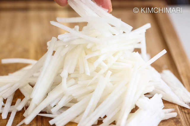 - 3 cups daikon radish (or Korean radish, julienned)
