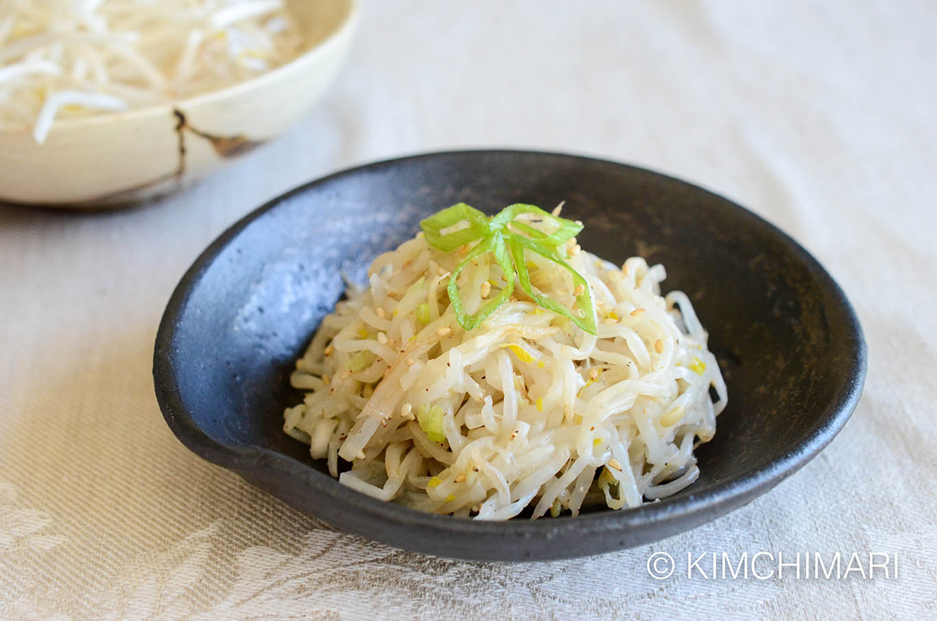 Radish Salad (Moo Saeng Che 무생채) Korean Bean Sprouts Recipe – Sukju Namul (숙주나물) - Make Musaengche (Korean Radish Salad) with julienned radish. Click on recipe link (left) for more details or see video.