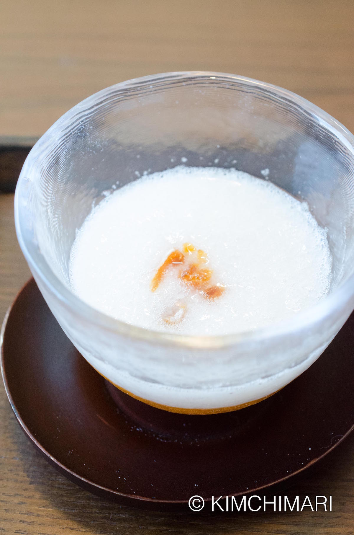 Korean Temple Food Dessert – Persimmon in yam and pear foam – stirred